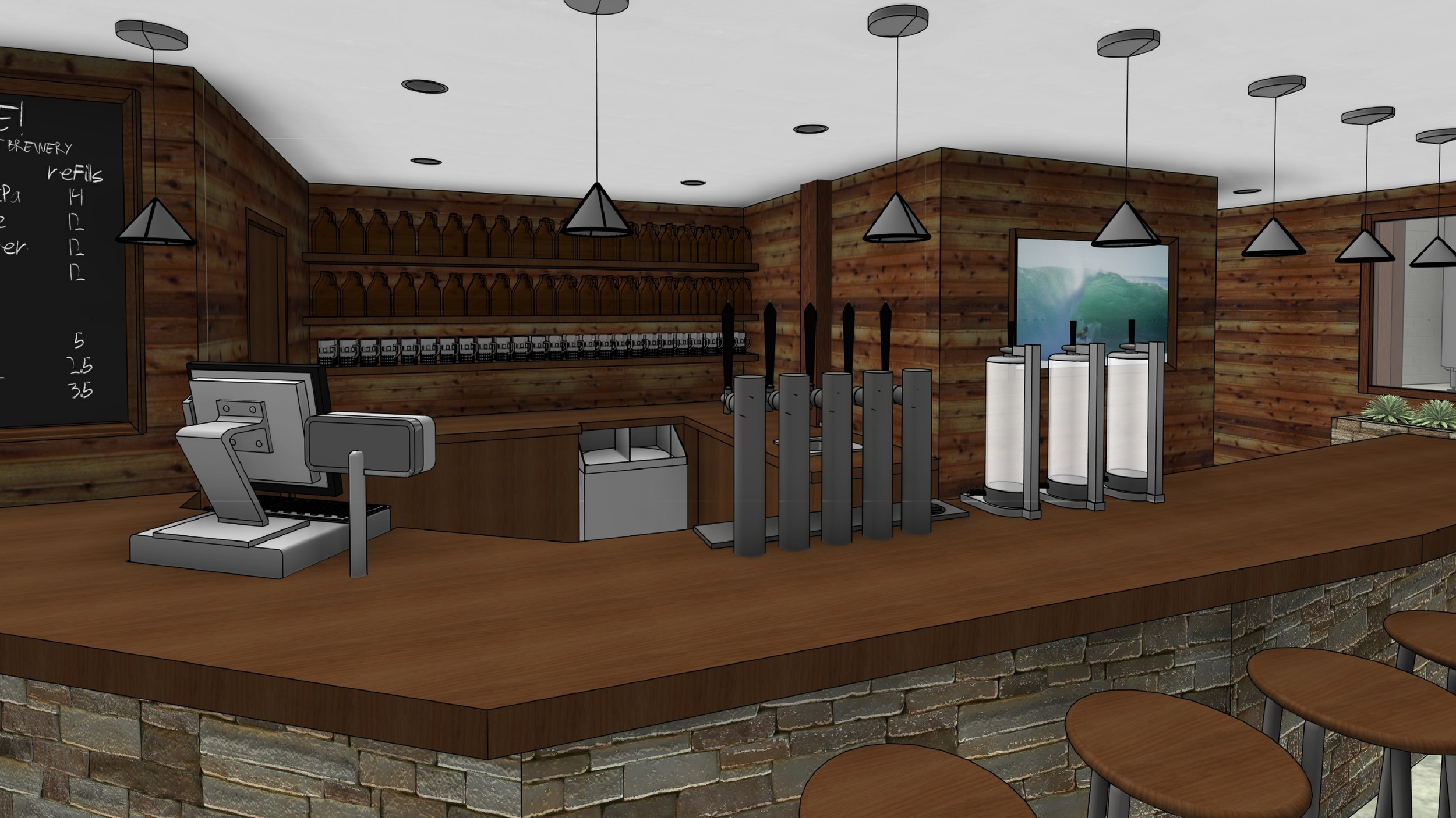 This project was one of our favorite commercial projects. We worked closely with the clients ideas to help them create a space that feels comfortable and fun. The space is welcoming and warm, with clean lines, simplicity, and lots of space to grab a pint, or refill your growler. If you haven't tried their beer yet, we recommend checking them out.